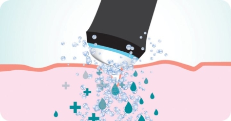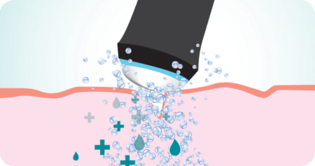 The first step provides resurfacing of the upper skin layer to remove dead cells. It also smoothens and renews the skin, diminishing fine lines and surface irregularities. Unlike microdermabrasion it’s non-vacuum, therefore a less irritating method – yet yielding better results. It’s extremely gentle and can be used on sensitive skin and all over the face, including around the eyes, mouth and nose.