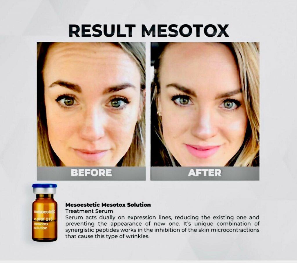 Mesotox treatment is a Mesotherapy rejuvenation treatment using a micro-infusion delivery system Dermapen®  or Secret RF®  Needling that uses microscopic gold-plated needles to microinject personalized therapeutics.
