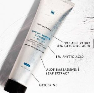 - This gel cleanser features a free acid value of 8% glycolic acid to promote cellular turnover.