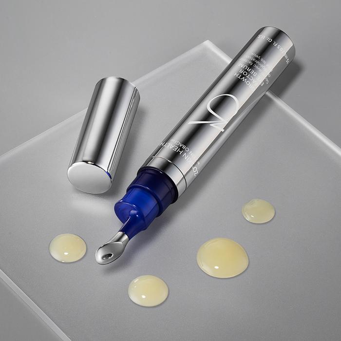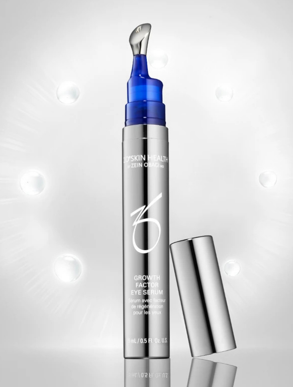 Powered by clinically proven ZO® Growth Factor technology, Growth Factor Eye Serum is designed to improve the appearance of expression lines, creasing + hollowness while plumping + encouraging healthy skin for a visibly revived look. The cooling applicator soothes the skin + re-invigorates the look of tired eyes.